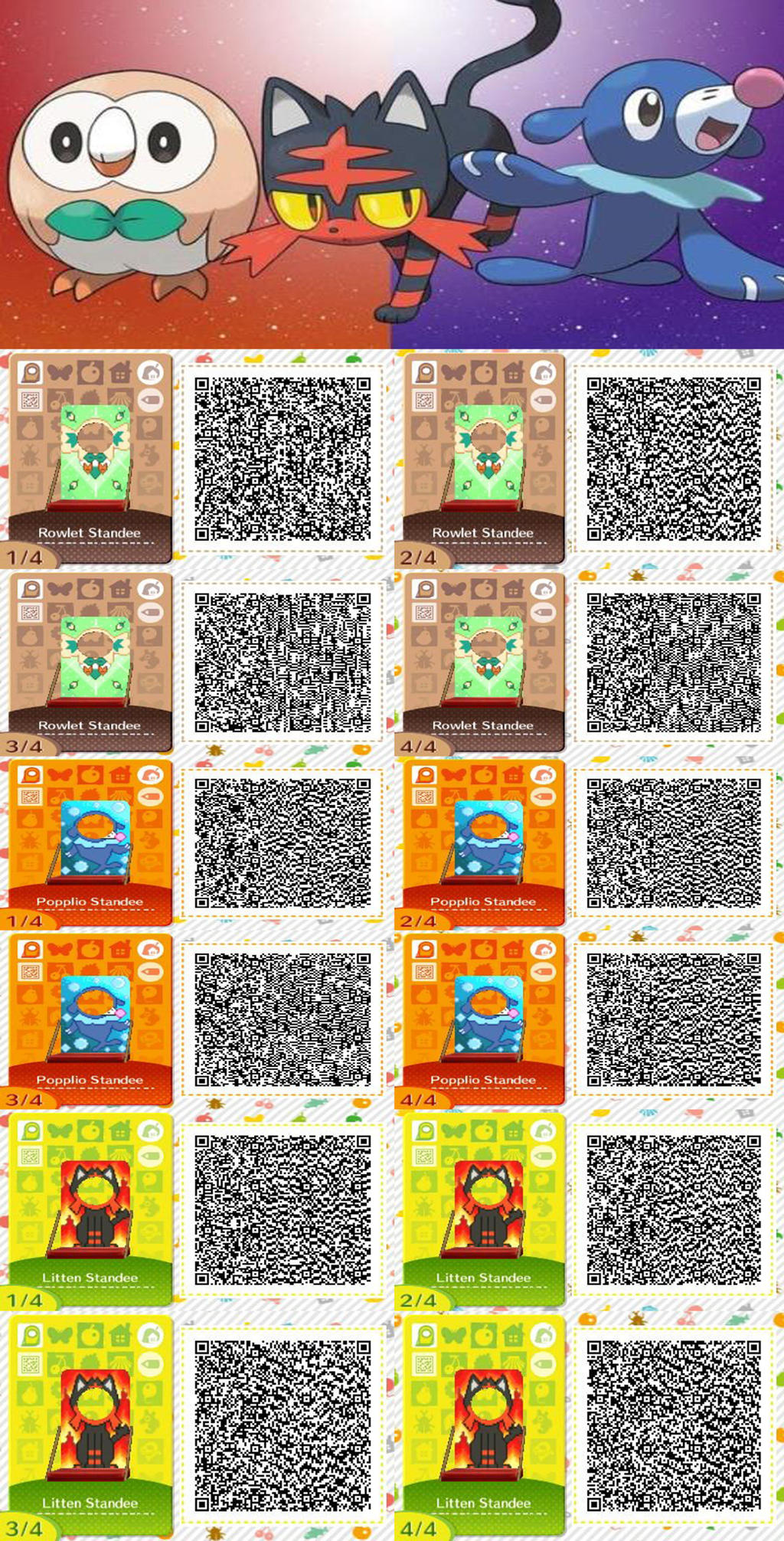 Acnl Pokemon Sun And Moon Starters Cut Out Stande By Acnl Qr Codez On Deviantart