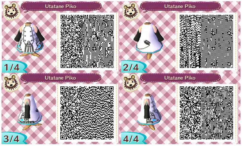 This page provides QR codes of dress designs for Animal Crossing New Leaf. I now also include the alphanumeric codes for New Horizons ACNH designs. New Leaf QR codes.
