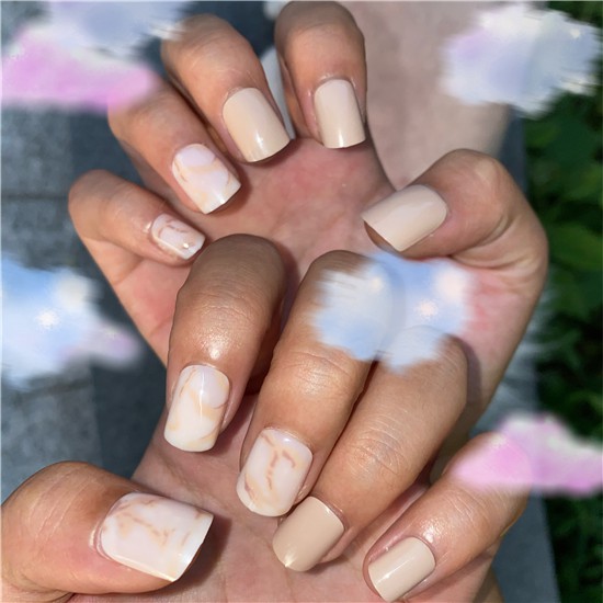24pcs Fake Nails Khaki White Pink Marble Square Nail Tips Shopee Philippines