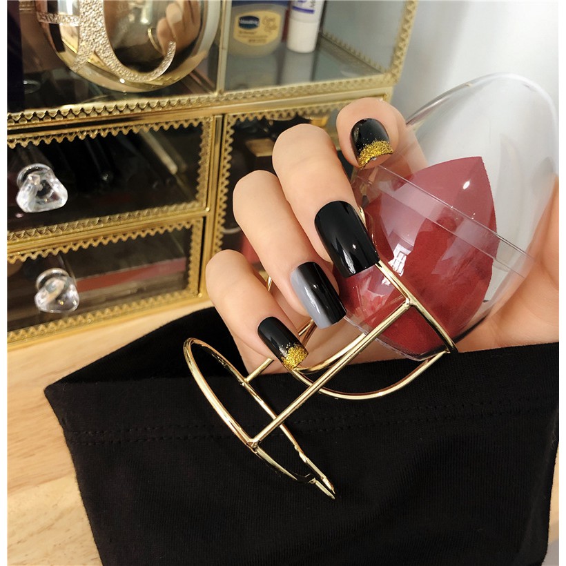 24pcs Black Gray Gradient Gold Foil Nail Arts Round Head Full Cover Acrylic Fake Nails Shopee Philippines