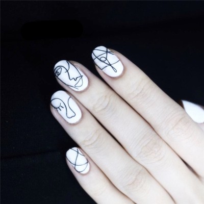 Vinzar Black False Nails Full Cover Leaf Square Fake Nail White Glossy Ninthavenue Europe