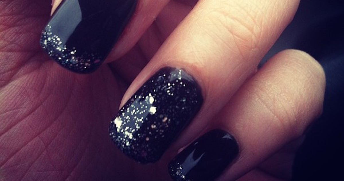 Black Grey Nails With Glitter Gel Nails Nails Cute Nails
