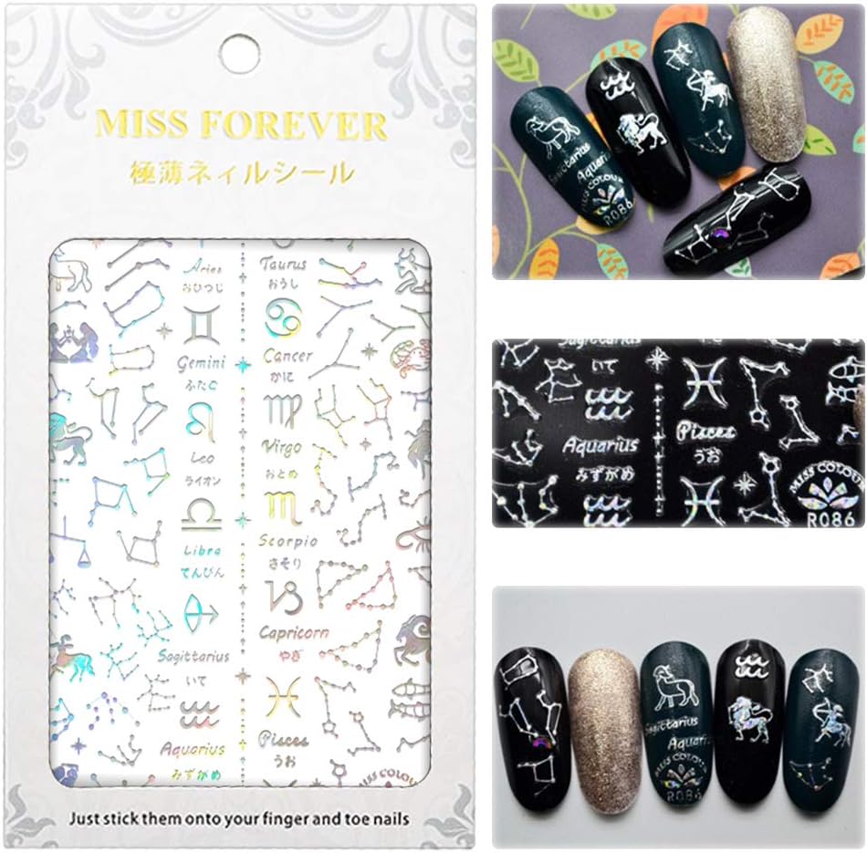 Amazon Com Zodiac Sign Nail Decals Glitter Holographic Star Image For Girls Manicure Spa Back Glue Iridescent Nail Art Stickers Arts Crafts Sewing